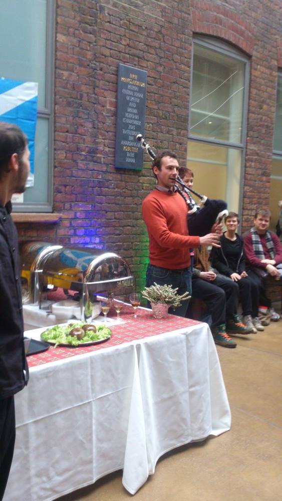 My very good friend Ewan and I performed the piping and the Ode to the Haggis on Burns Night at the Royal Central School of Speech and Drama.